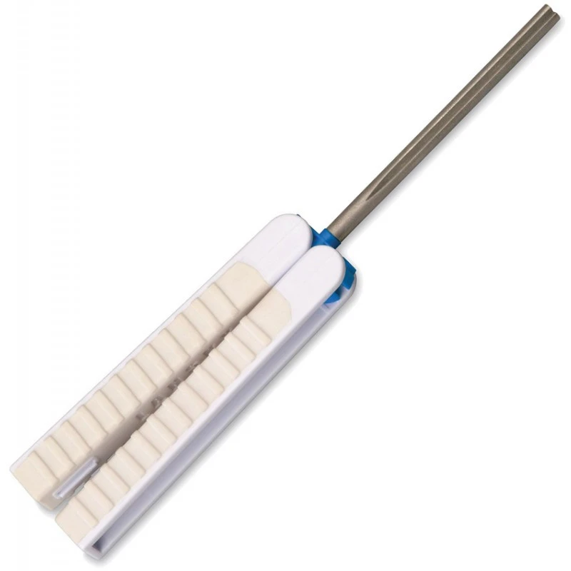 Sa tige a grains fins (600 grit) est parfaite pour les retouches et finitions des hameçons, crochets et couteaux.