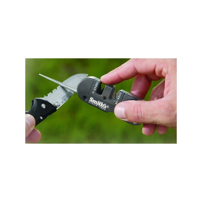 L’Aiguiseur de poche Smith’s vous permettra d’aiguiser vos différentes lames où que vous soyez grâce à son petit format.