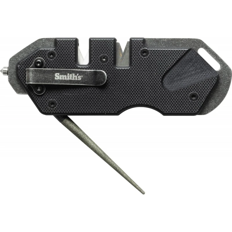 Cet aiguiseur tactique PP1 noir de la marque SMITH’S est équipé d’une fente d’affûtage en carbure de tungstène et d’une seconde en céramique.