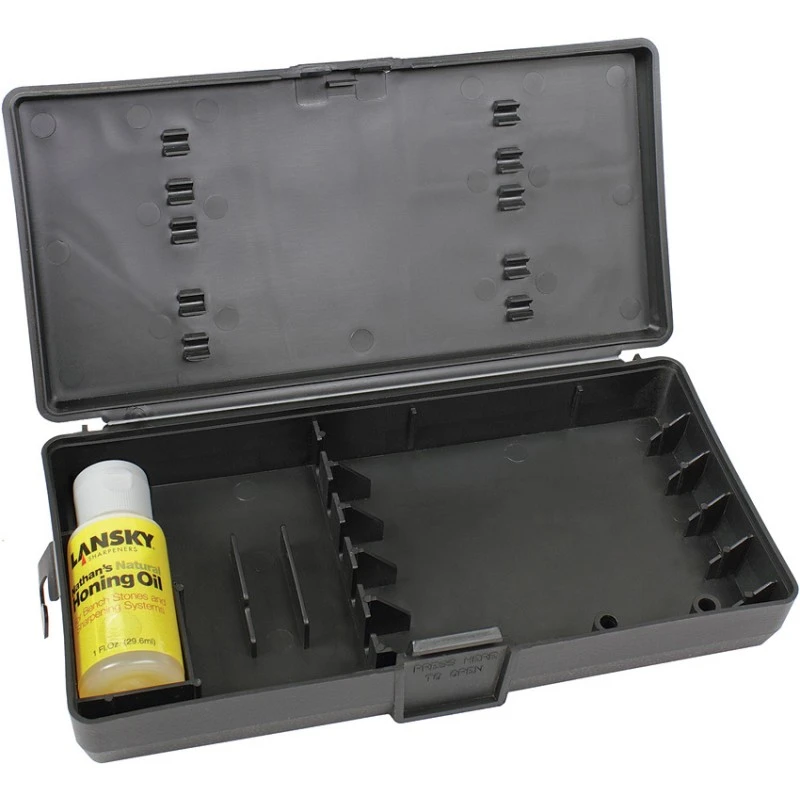La Boîte Custom Carrying avec Huile de Rodage LANSKY est conçu pour contenir un Kit complet 5 pierres, pince multi-angle, 5 tiges de guidage et l’huile de rodage (ces produits sont non inclus).