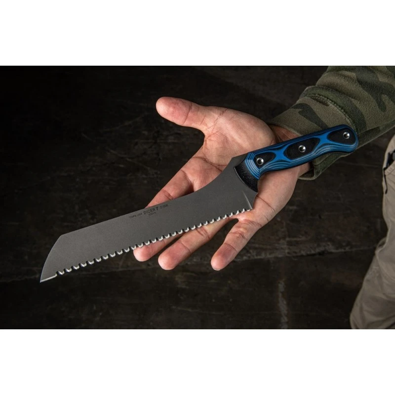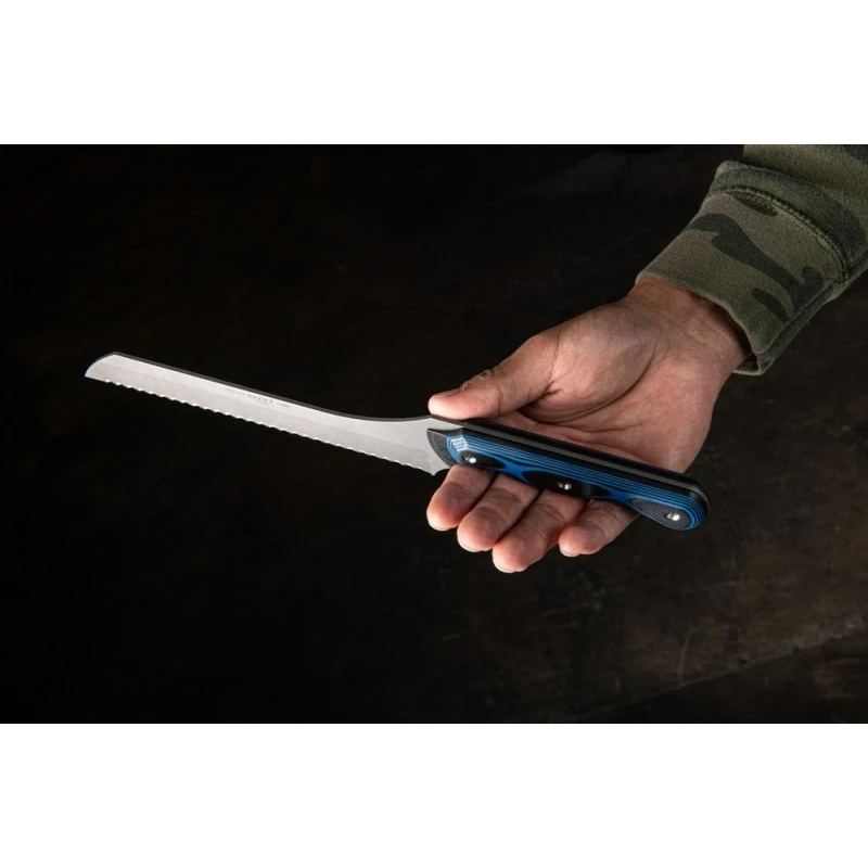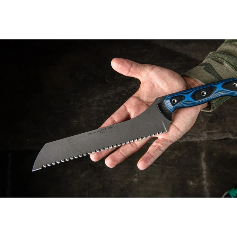 Le couteau à pain Dicer 7 de la marque TOPS dispose d’un bord droit et entièrement dentelé qui lui permet une découpe ultra nette de votre pain et de bien d’autres aliments.
