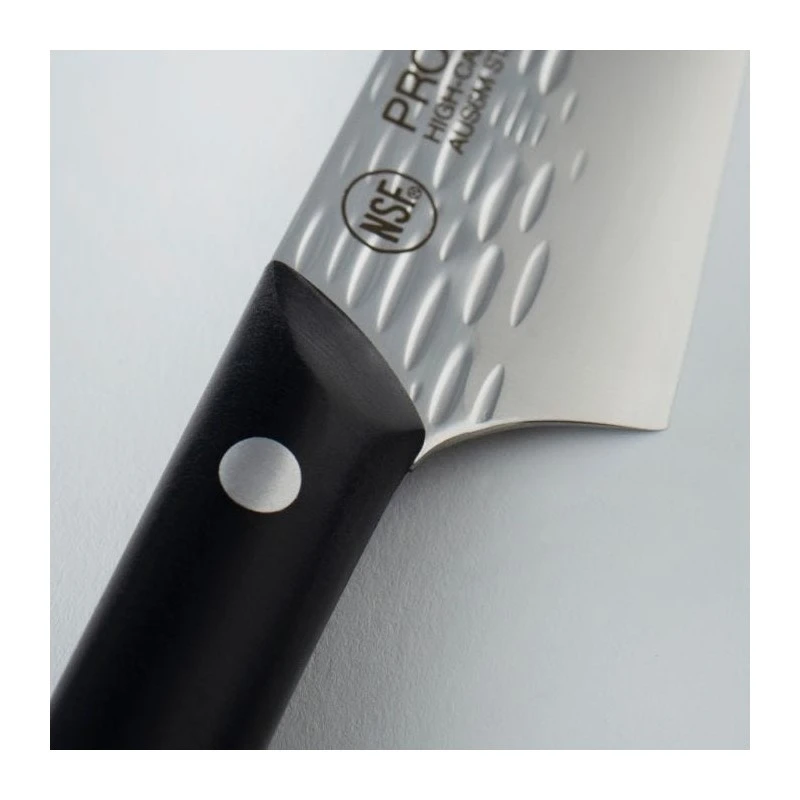 Cette lame triangulaire agile est parfaite pour désosser les volailles et parer les viandes. Mais elle a aussi une grande variété d’autres fonctions. La pointe étroite se déplace facilement autour des os et entre les articulations. L’extrémité plus large permet de trancher ou de parer les légumes rapidement et facilement. Cette forme de lame offre un haut niveau de contrôle pour la manipulation des fruits et légumes de petite et moyenne taille. Si vous aimez un couteau compact et agile, le Multi-Prep asiatique sera votre nouveau compagnon.