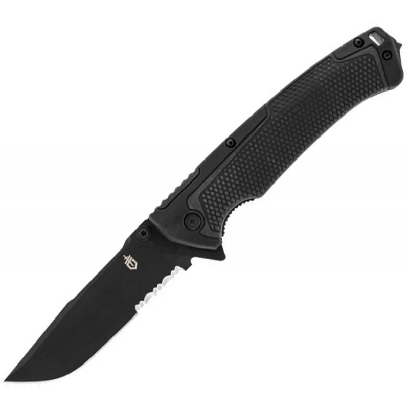 Ce Couteau Decree Linerlock GERBER contient des ergots de pouce ainsi qu’un flipper permettant à l’utilisateur de déployer rapidement la lame du couteau avec une seule main.