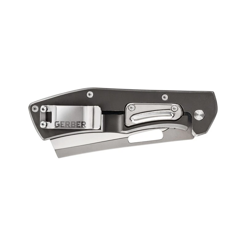 Le couteau pliant de poche Flatiron Micarta gris GERBER contient une lame robuste de 9,2cm ainsi qu’un emplacement pour votre doigt afin d’assurer un positionnement parfait de la main.