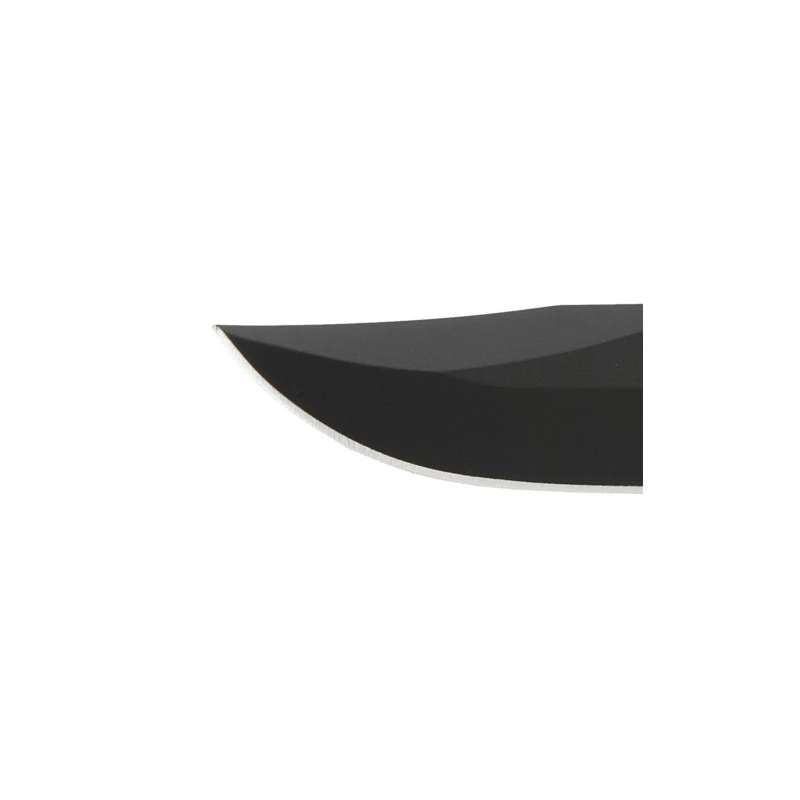 Sa lame en 1095 Cro-Van de 17.8cm Noir est semi-dentelée.