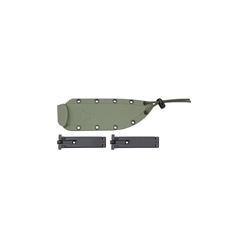 Ce couteau Model 6 de Esee offre une lame semi dentelée noir en acier carbone ainsi qu’une longueur totale de 27.9cm avec un manche en lin noir Micarta.