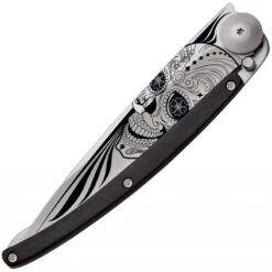 - Poignées en toile micarta avec un grand trou de lanière et une extrémité brise-verre.