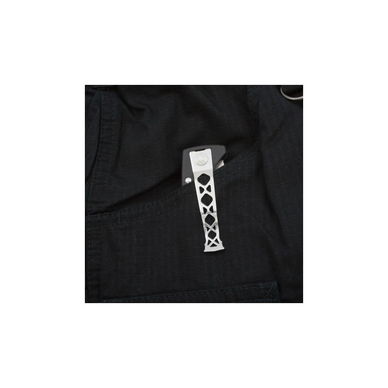 Sa lame pliable en AUS-8 de 8.6cm Satin est Lisse avec un système de verrouillage à Cran d’arrêt.