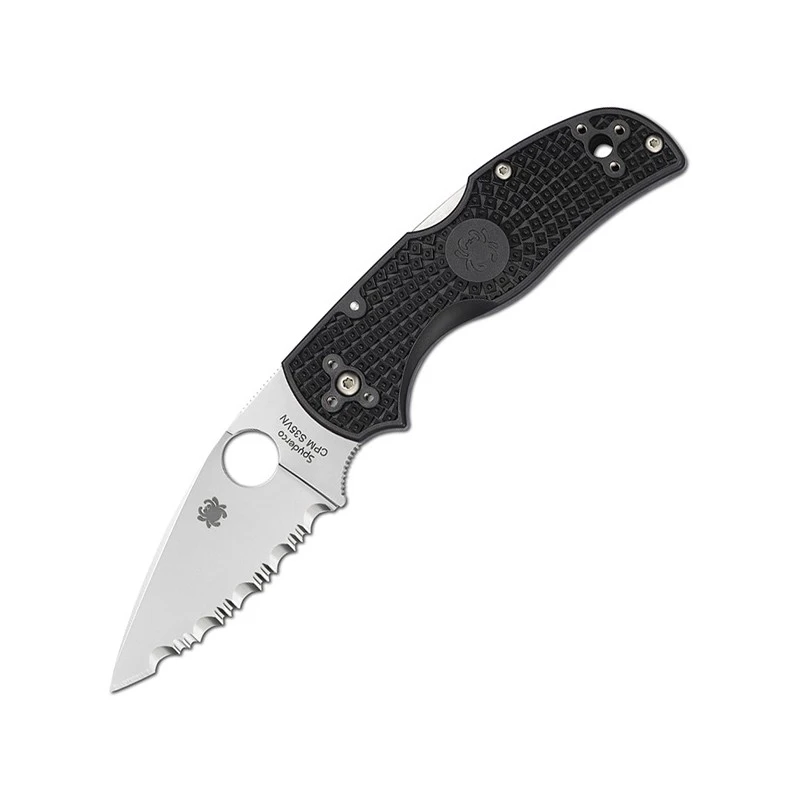Sa lame pliable en CPM S35VN de 7.6cm Satin est dentelée avec un système de verrouillage à Cran d’arrêt.