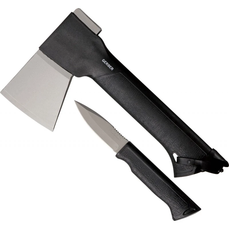 Ce kit Gator Combo Axe Gerber offre une hache en acier forgé mais également un couteau à lame lisse logé dans son manche.