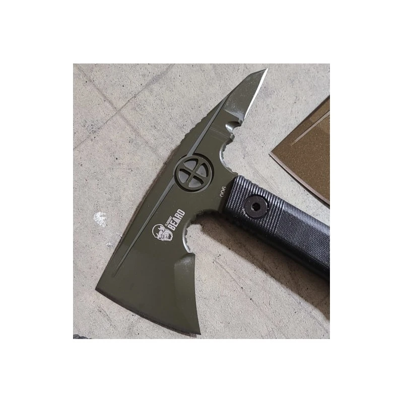 La Hache Templar FLAGRANT BEARD est conçu avec une tête de 16.5cm en acier 1095HC finition Cerakote, un tranchant de 6.7cm et un manche en G10 (fibre de verre) noir.