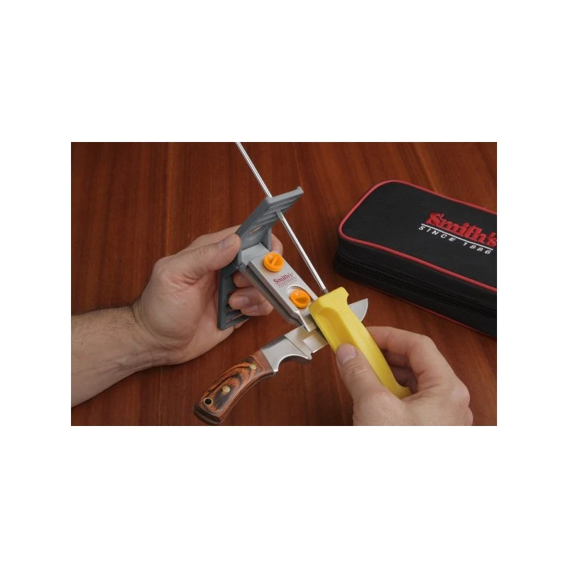 Le Kit Aiguiseur Diamant/Arkansas Précis Smith’s permet d’aiguiser facilement tous les types de couteaux même ceux à lames dentelées.