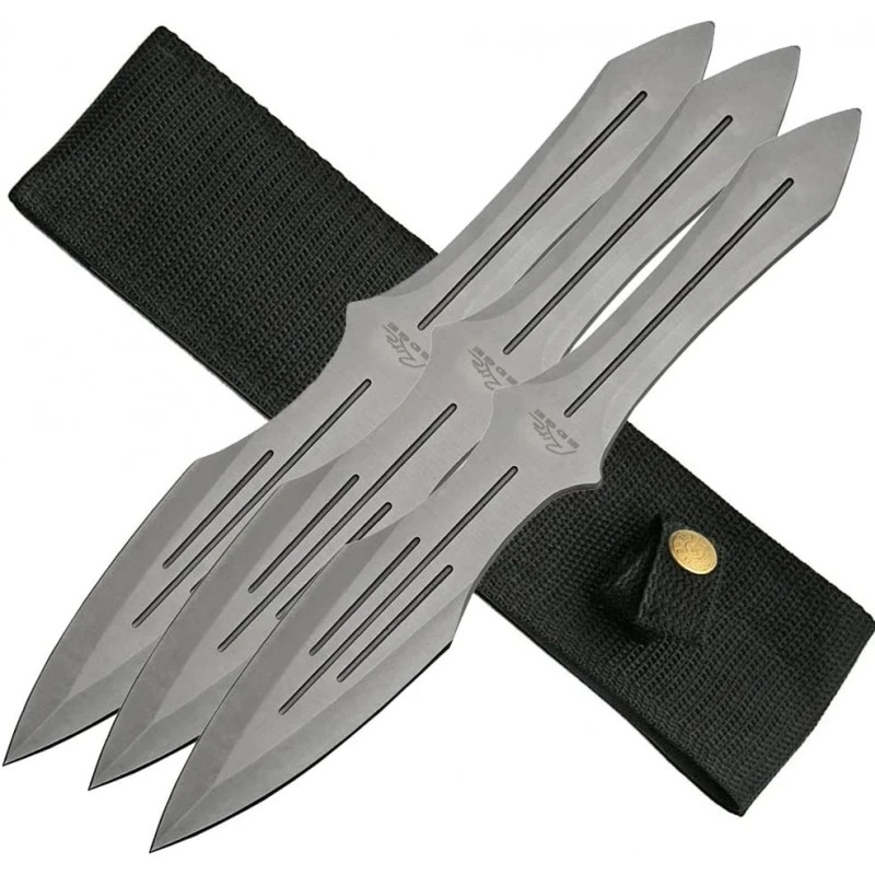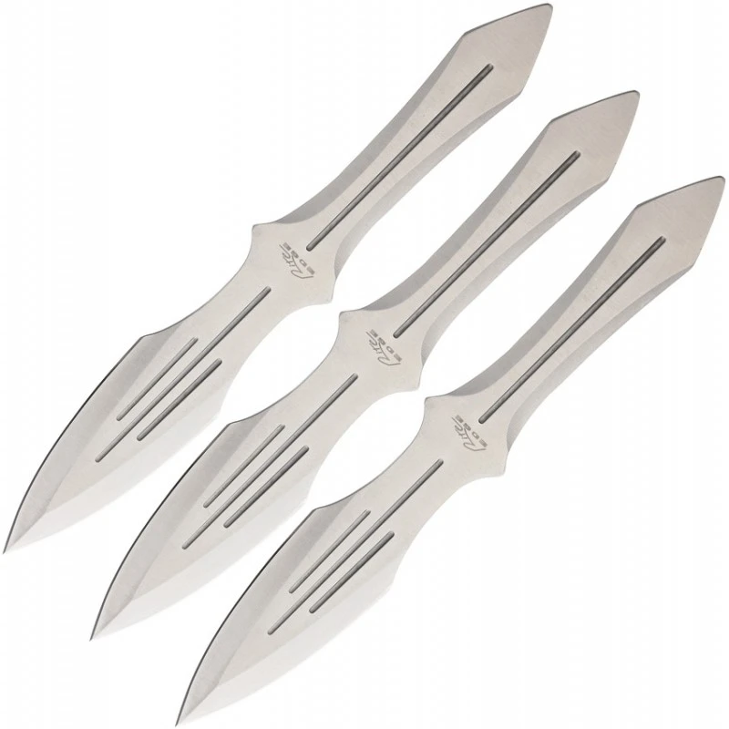 Conçu en acier inoxydable avec une finition satinée, ce kit contient 3 couteaux à lancer offrant chacun une longueur totale de 25.4cm et une lame à double tranchant de 8.6cm.