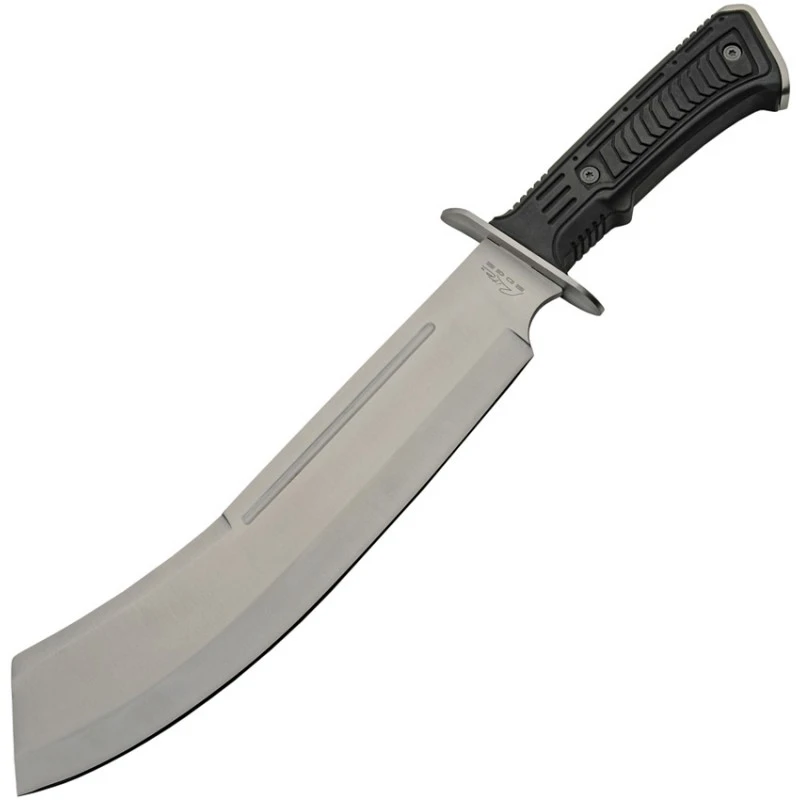 La Machette Mountain de RITE EDGE possède une lame en acier inoxydable satinée de 27cm et un manche ABS caoutchouté de couleur noir.
