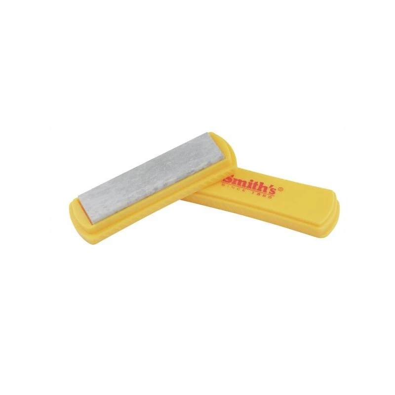La Pierre à aiguiser Arkansas Naturelle Smith’s polit les lames tout en enlevant les résidus de métal.
