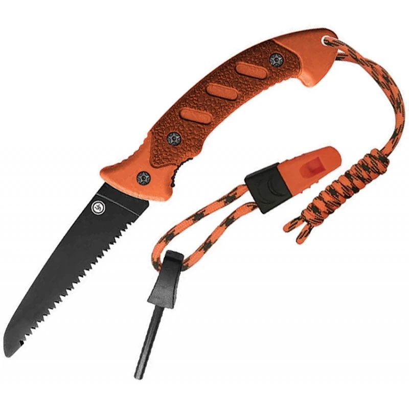 - Comprend un cordon de paracord, un allume feu, un sifflet,